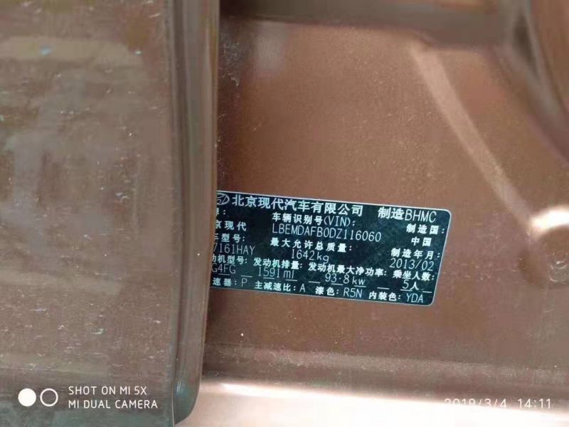 2013年4月現(xiàn)代朗動1.6L自波6.78萬元