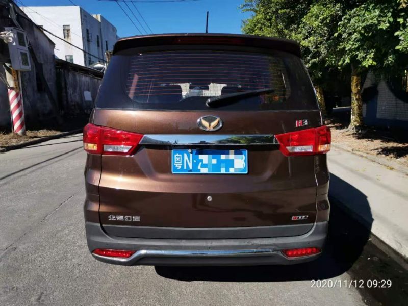 海豐二手車2017年6月北汽幻速H3,3.Xx萬元.1.5L手動豪華型7座MPV。棕色,有天窗。多功能方向盤,皮質座椅,大彩屏中控臺,倒車影像,倒車雷達,后排座空調出口,鋁合金輪框,前后輪碟剎。7座位,排列2-2-3,后兩排座位出入方便。3.2萬公里,年審至2021年6月,強制險到期。好開省油空間大。海豐看車。